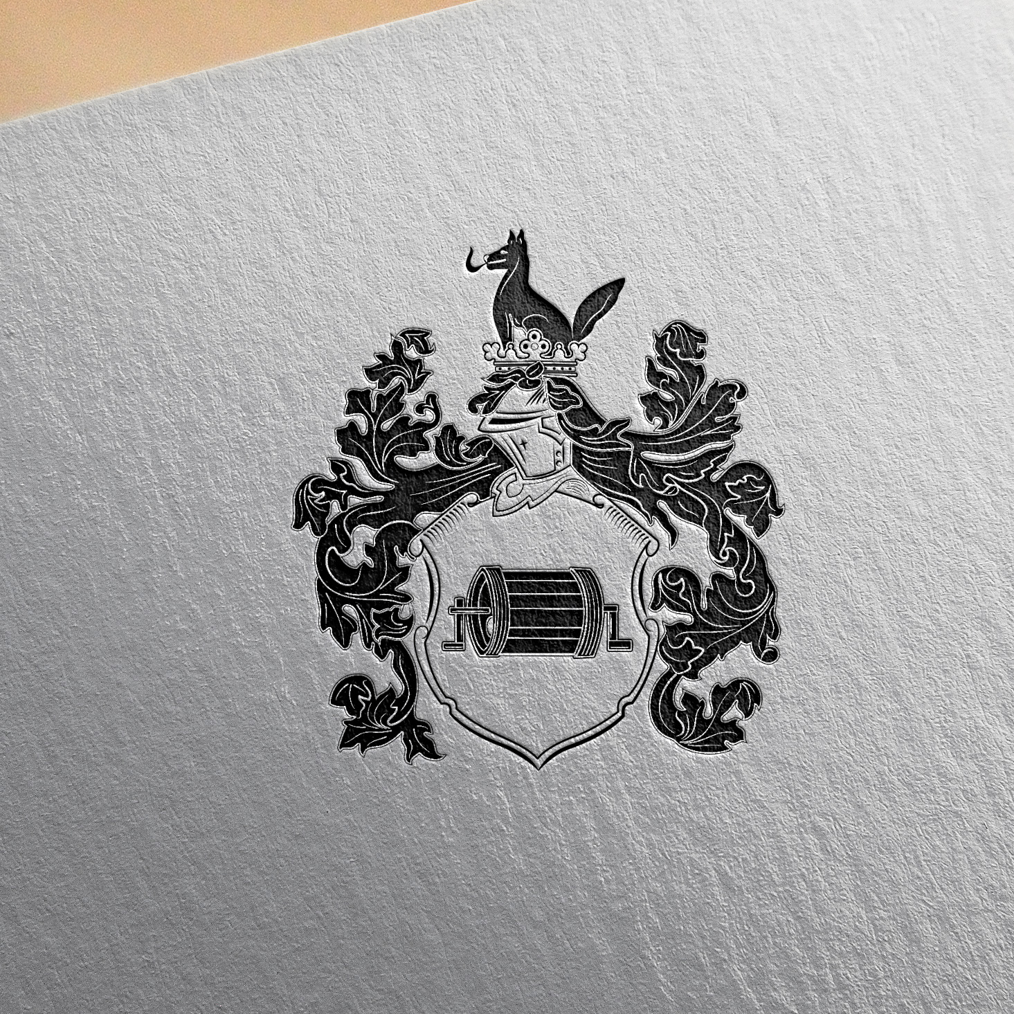 This is a modern reinterpretation of a client’s family coat of arms, based on a historical drawing.