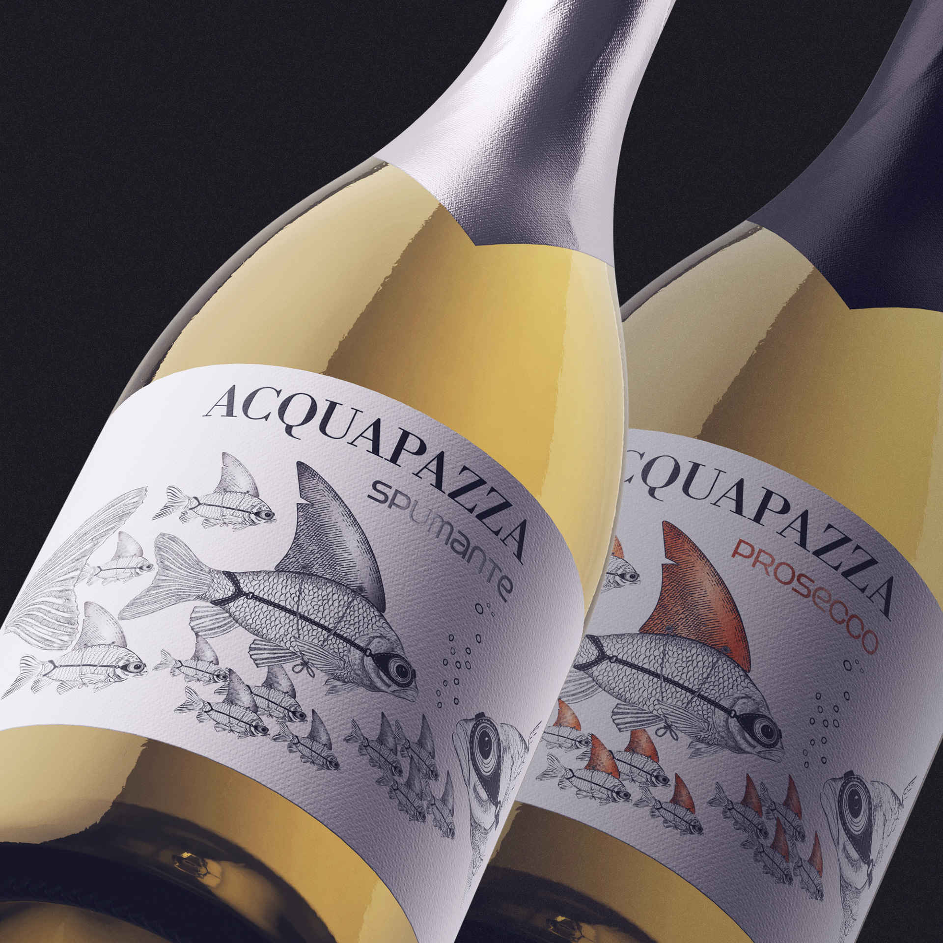 Humorous idea of crazy fish with a shark fin tied by a rope.