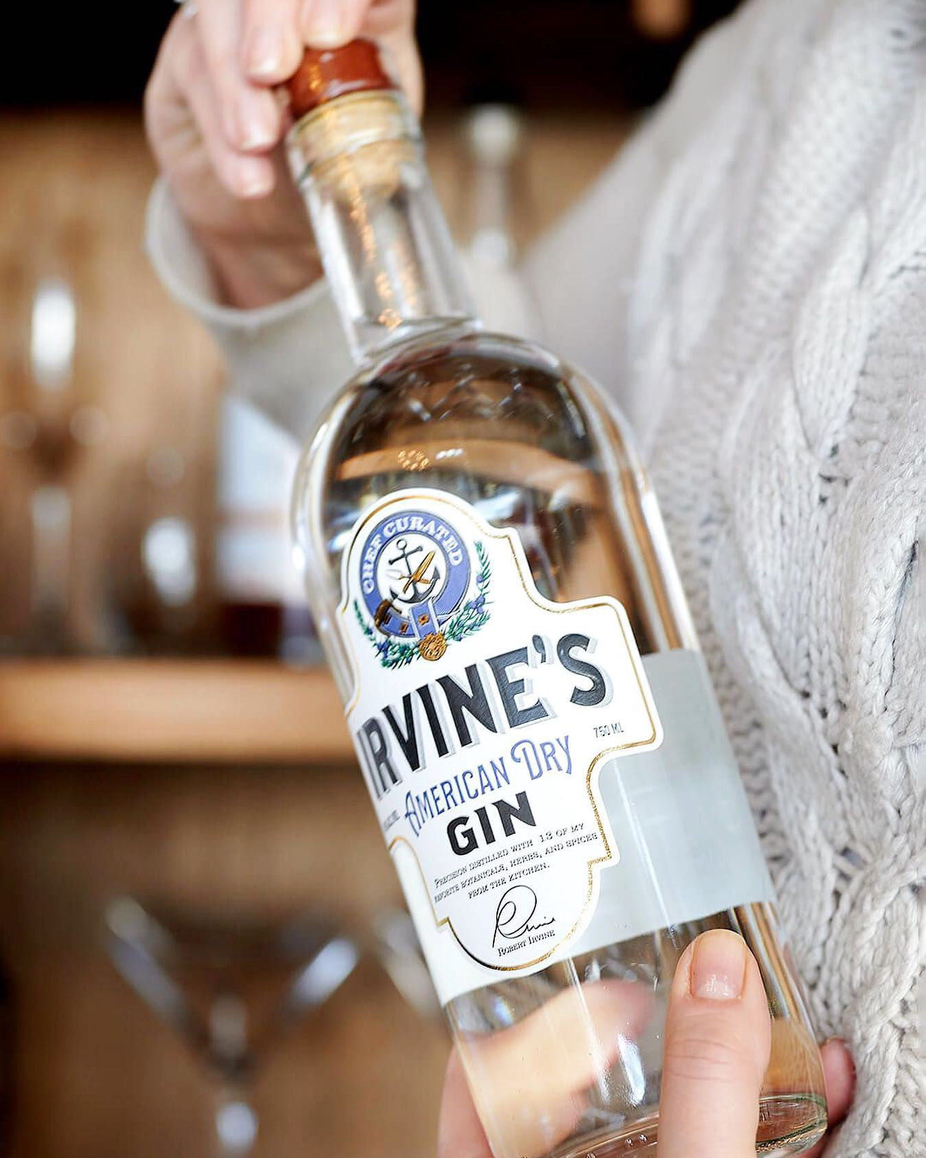 This design blends craftsmanship and culinary sophistication to reflect the brand’s “chef-curated” spirit. The label features elegant typography with strong contrast between bold black lettering and refined blue accents, emphasizing both strength and freshness. A crest with culinary and nautical symbols crowns the design, conveying precision and authenticity. Subtle gold outlines and textured paper give it a premium, tactile finish that enhances the bottle’s shelf presence. The overall look communicates expertise, heritage, and handcrafted quality.