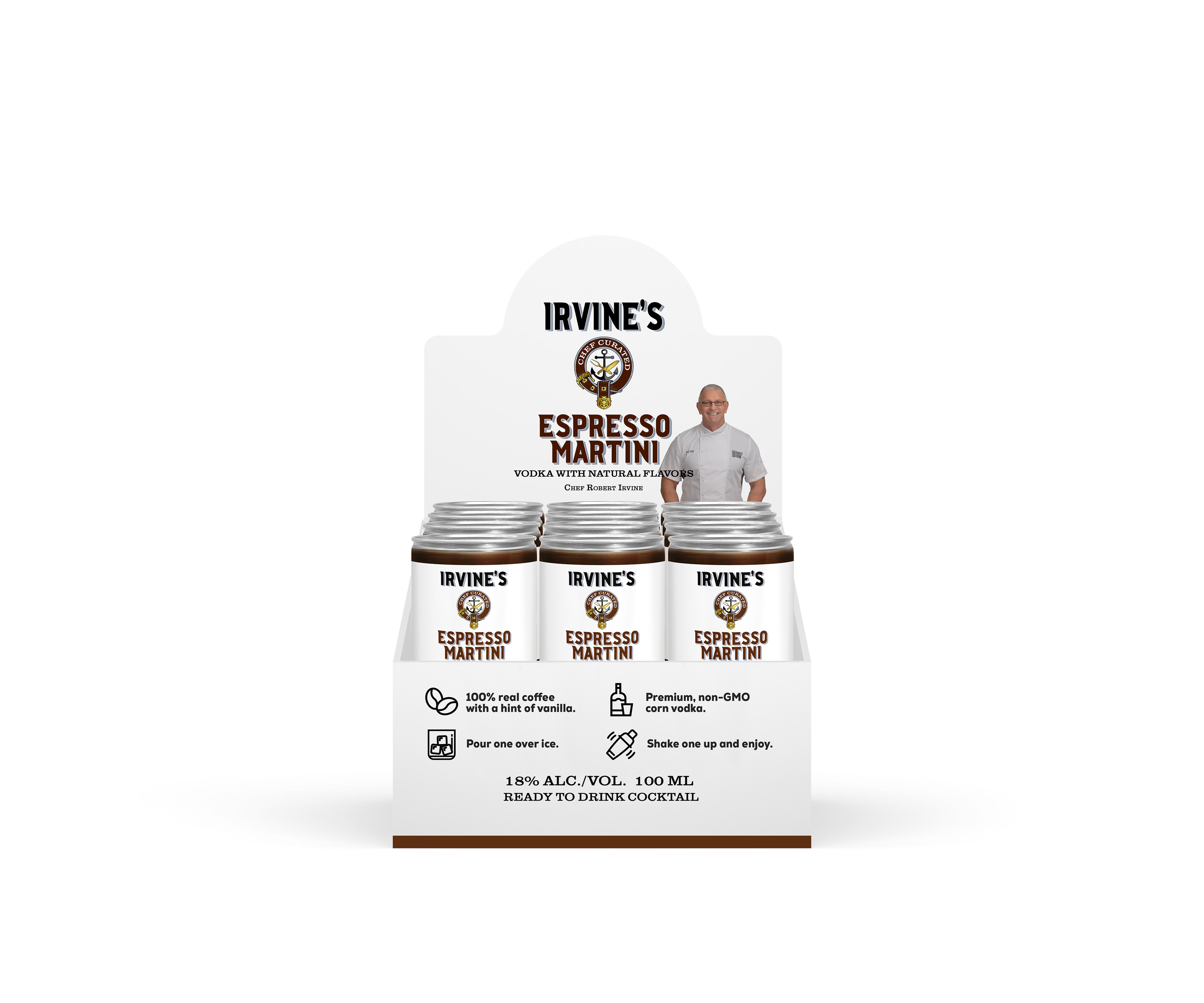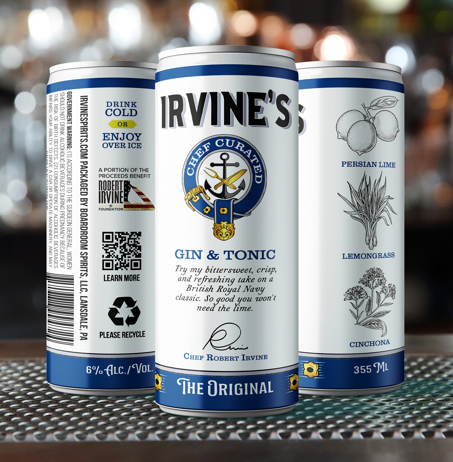 Robert Irvine is an English celebrity chef and television host known for his appearances across a range of Food Network programs. This logo was designed for a line of alcoholic beverages, including gin, vodka, and ready-to-drink canned cocktails.