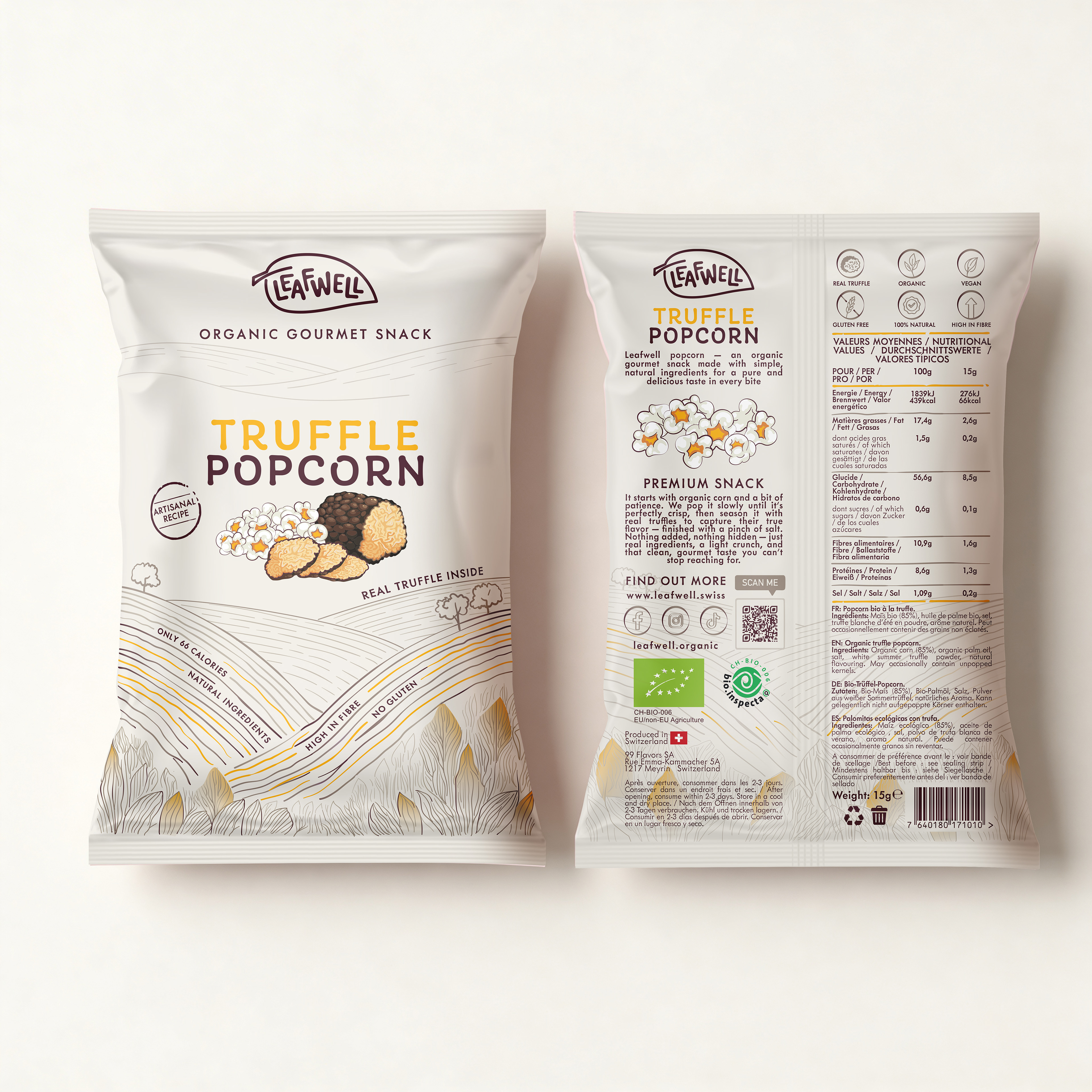A cohesive packaging system for Leafwell that translates its hand-drawn, organic logo into a premium yet approachable product line. Soft color palettes, flowing linework, and tactile ingredient illustrations create a natural, lifestyle-driven aesthetic while maintaining strong shelf presence and clarity. See also LEAFWELL logo & branding project.