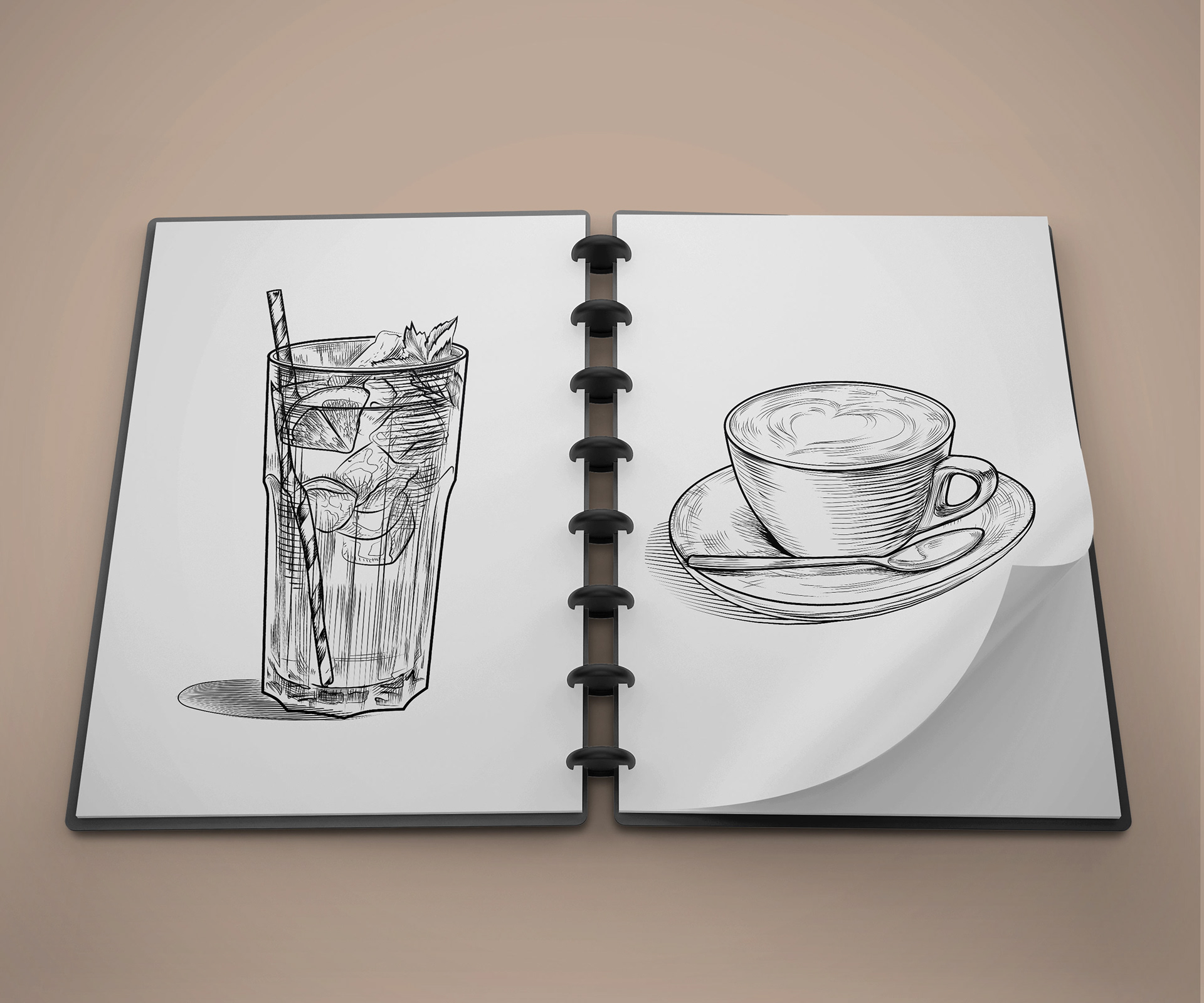 Menu design, 2nd and 3rd pages. Hand-drawn illustrations