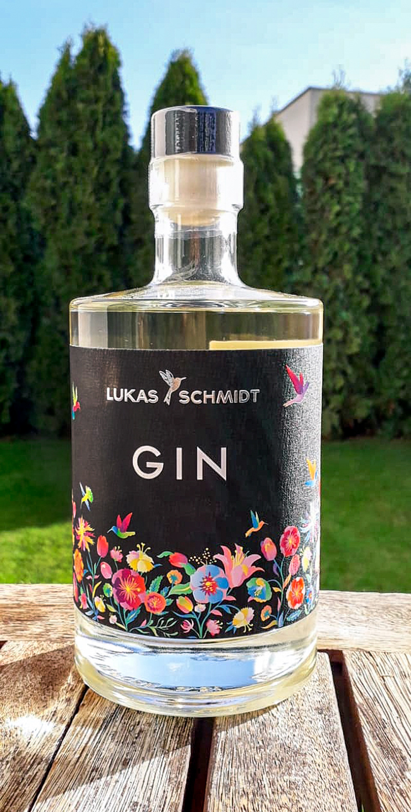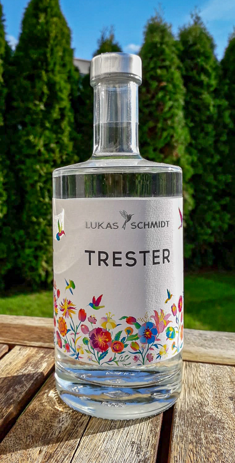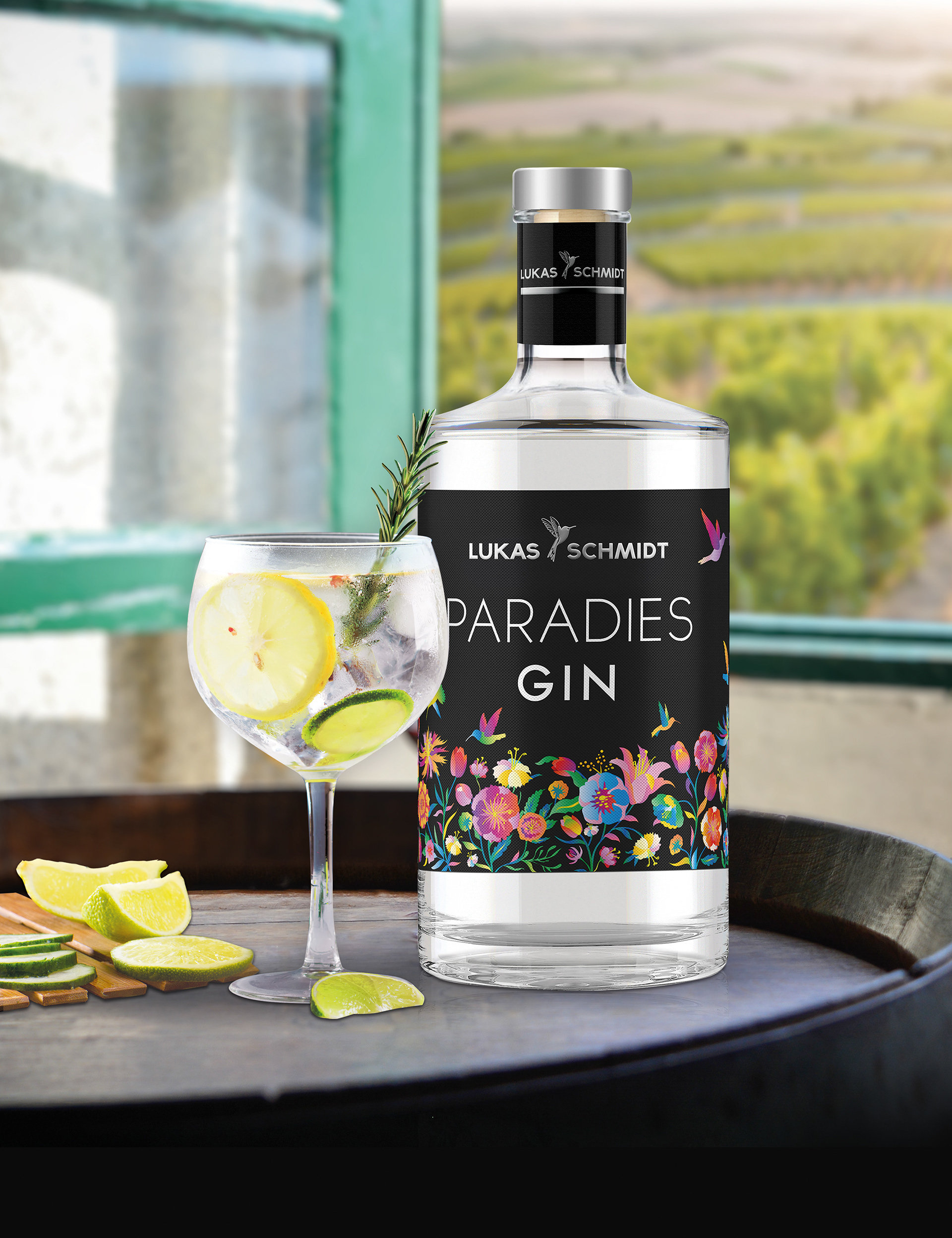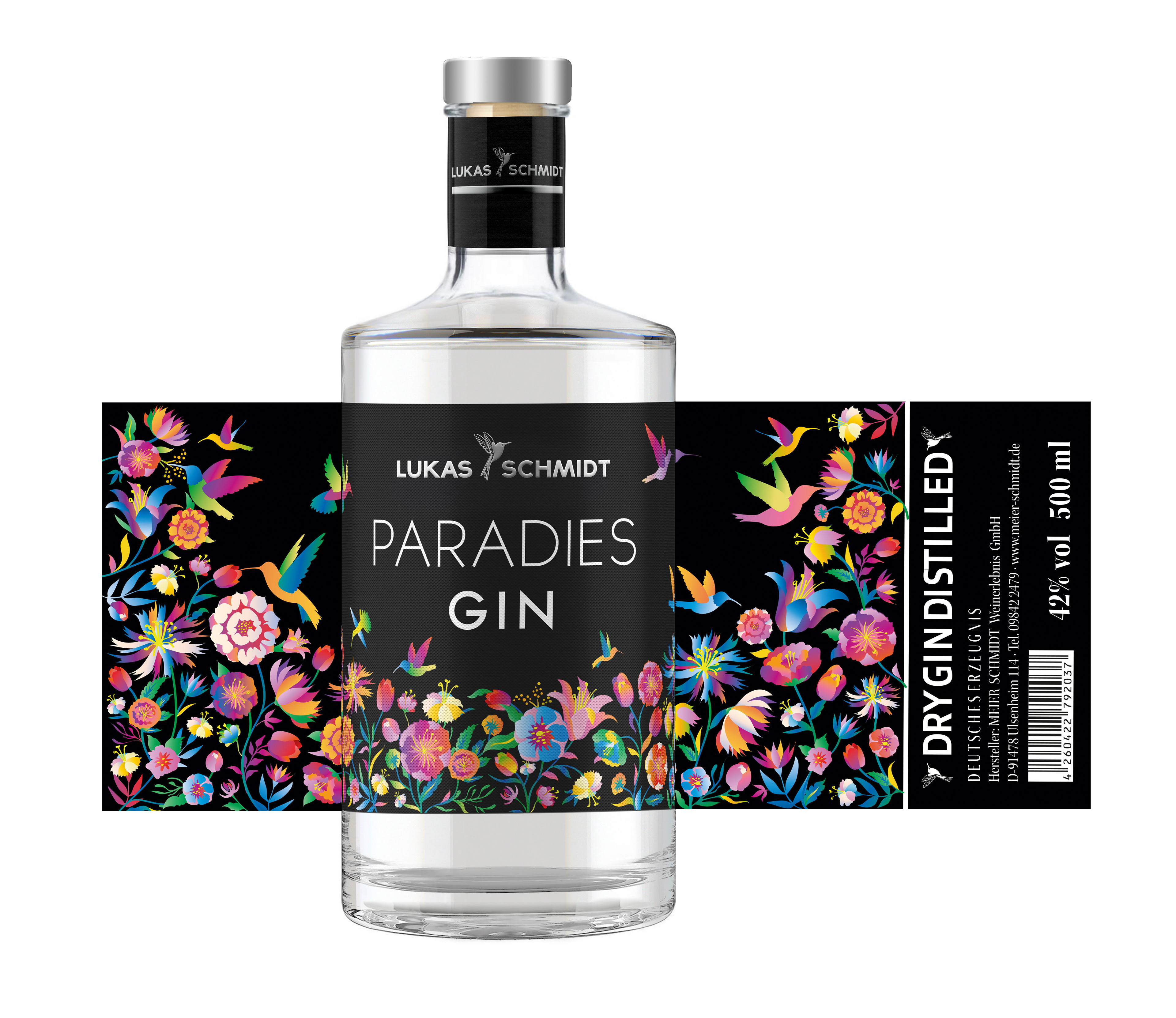 This design has a direct link to our design of wine label Aus dem Paradies (From the Paradise). This time we did a modern colorful, intricate floral and bird motif. The multi-colored flowers are creating a lush, paradise-like visual theme. Hummingbirds are adding dynamic movement to the design. The label combines modern minimalism with traditional ornamentation and conveys a premium, artistic, and nature-inspired aesthetic.