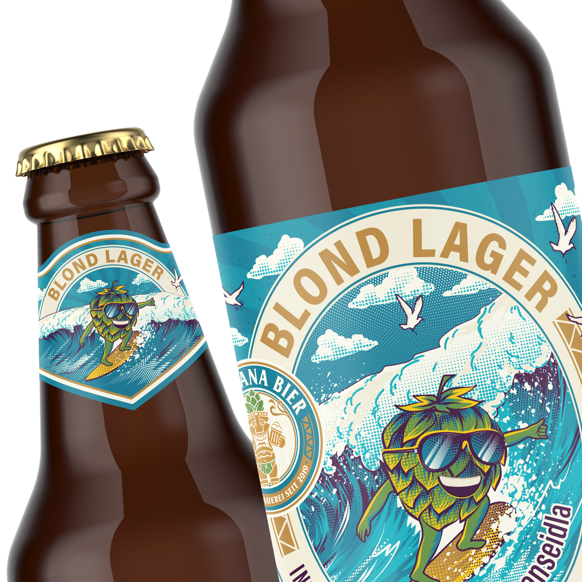 Beer is light and fresh with very high drinkability and is brewed golden-blond and handcrafted. a perfect “hang loose chillout beer” and that’s what the label should convey. Pau Hana means end of work in Hawaiian, which is what the beer also stands for.