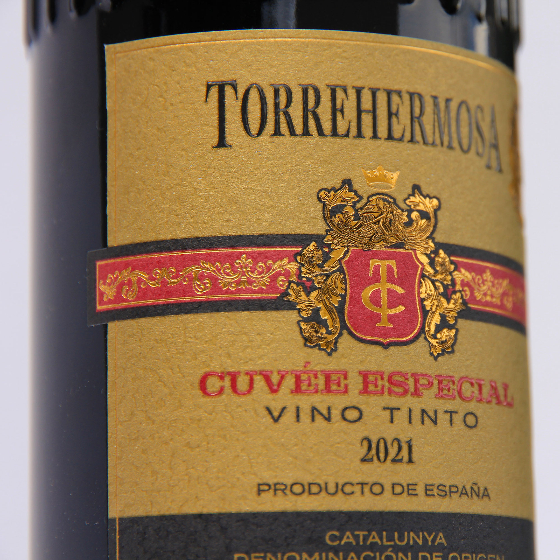 Label design for TORREHERMOSA, a distinguished Spanish red wine from Catalunya. The design reflects heritage, prestige, and craftsmanship, capturing the spirit of traditional European winemaking with a refined modern touch.