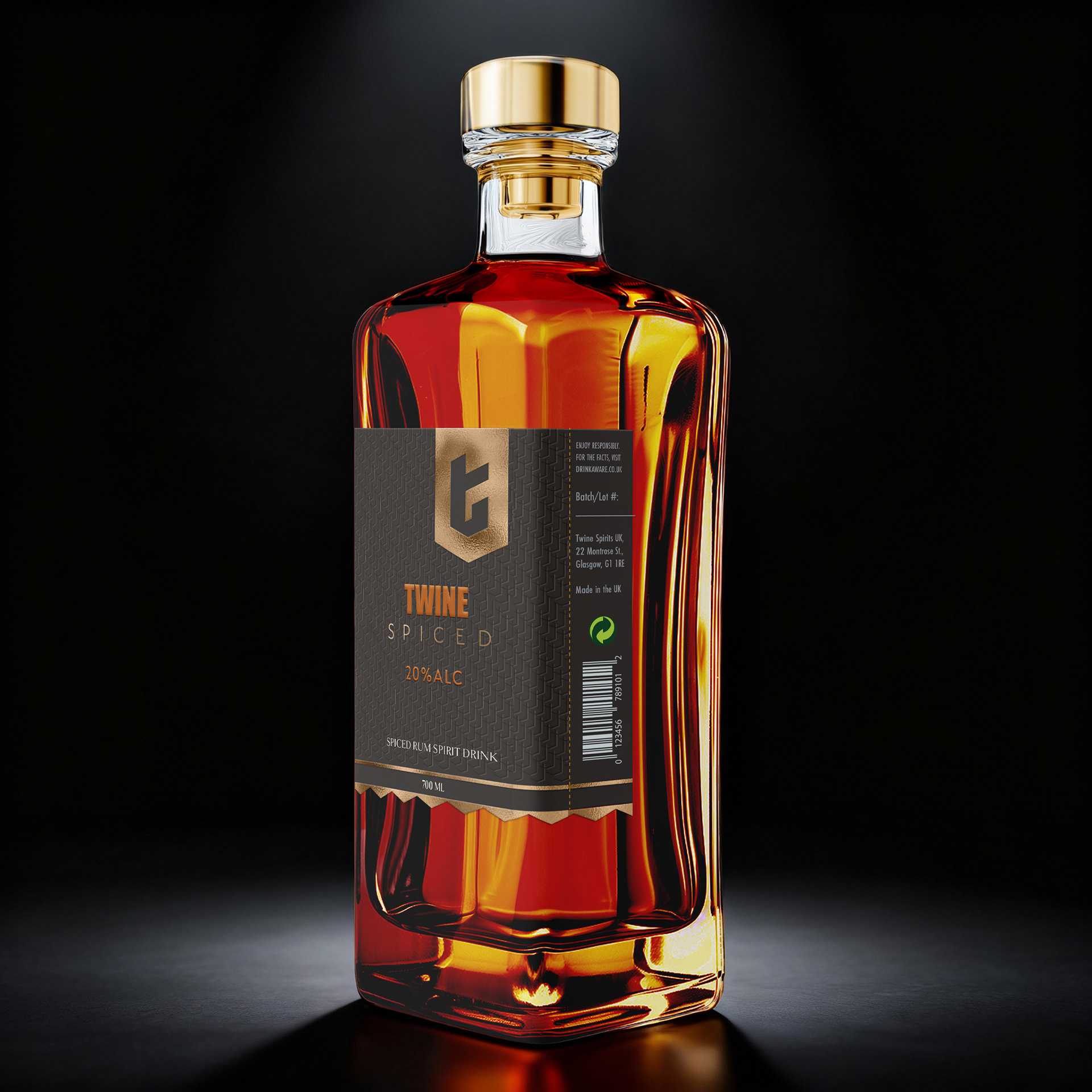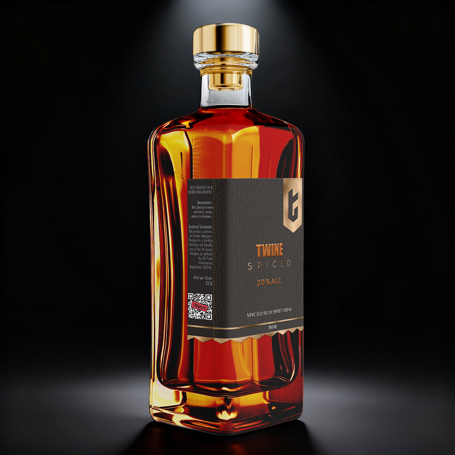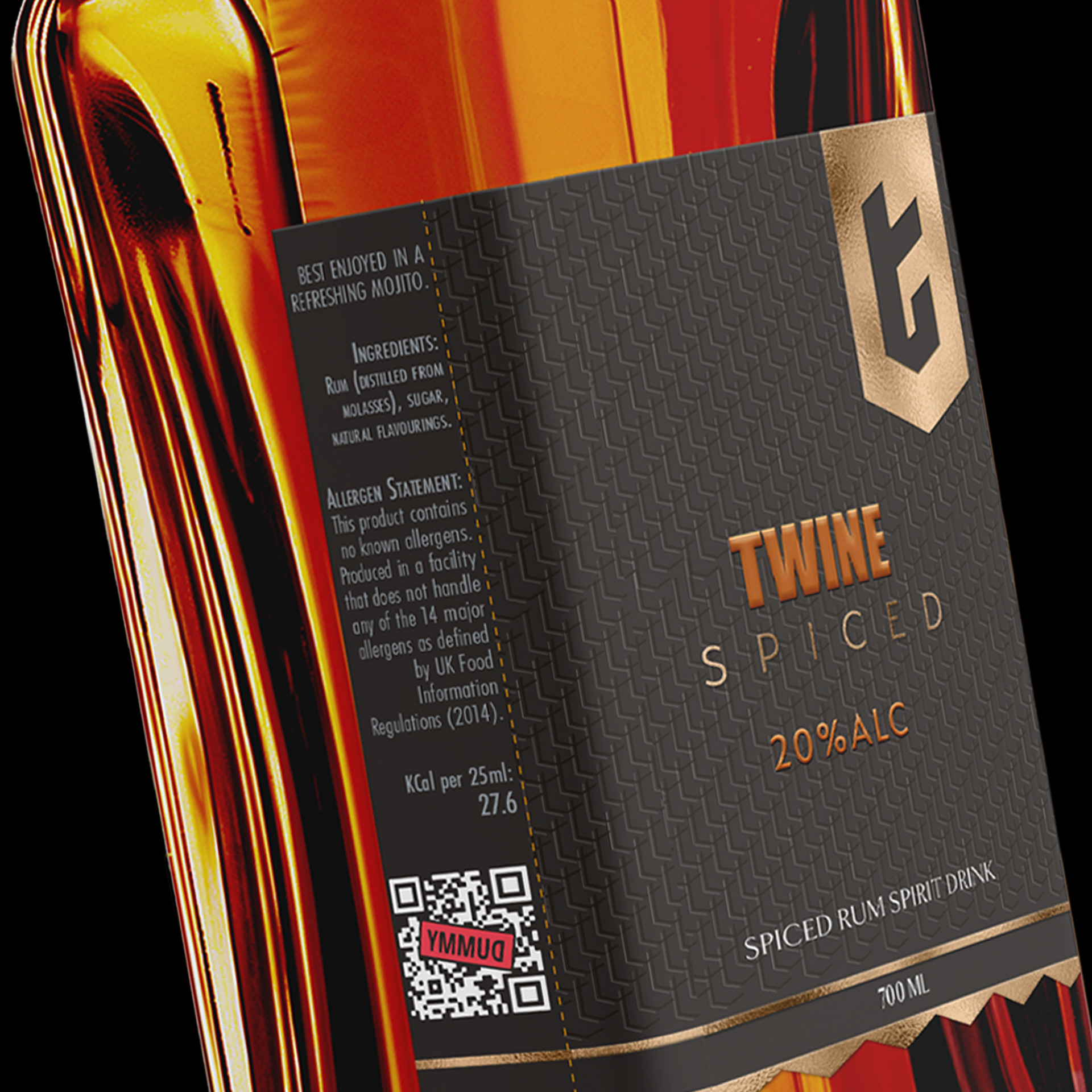 - for spiced label used warm bronze and copper tones with a subtle textured pattern, echoing the rich flavor and warmth of spiced rum.