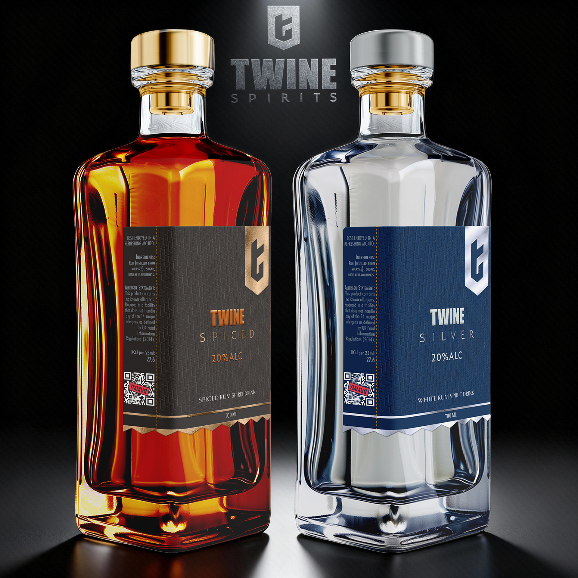 The label designs for TWINE Spiced and TWINE Silver reflect this dual character: